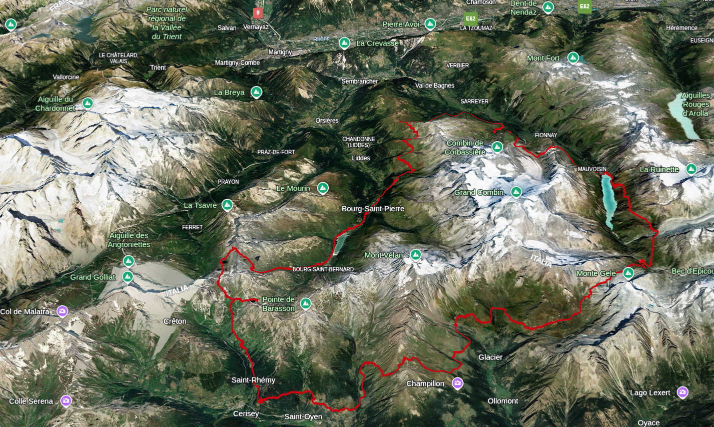 | 5 | do 21 aug | Rifugio Champillon | Auberge de l'Hospice | 20,6 | 1444 | 1391 |